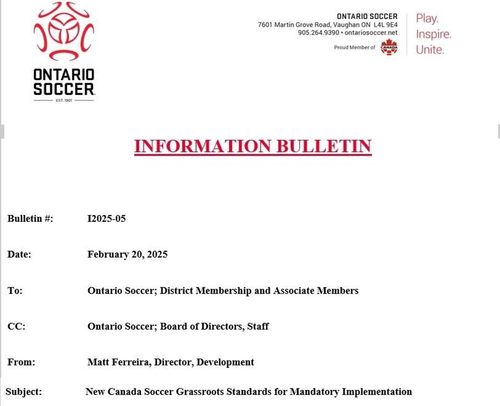 I2025-05 - New Canada Soccer Grassroots Standards for Mandatory Implementation