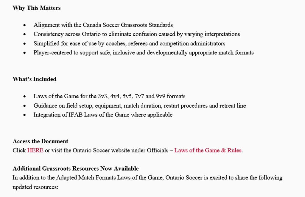 Updated Adapted Match Formats Laws of the Game & Additional Grassroots Resources